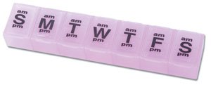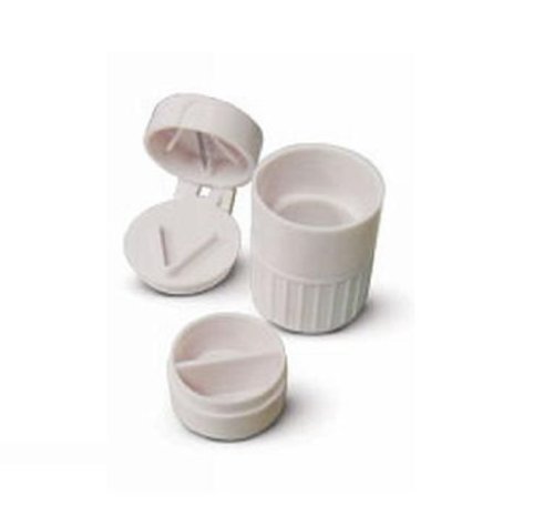 - Handy storage compartment holds unused pill portions